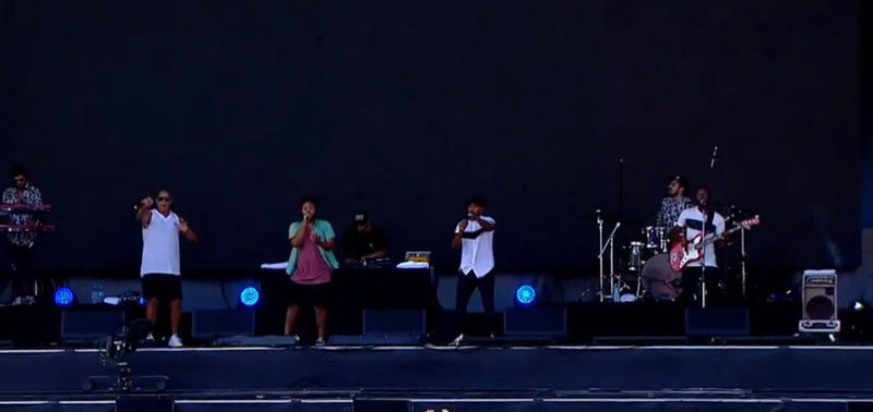 Os portugueses do HMB & Virgul & Carlão abriram os trabalhos no palco que é símbolo da diversidade musical. Com muito swing e carisma, os lusitanos conseguiram conquistar o público que chegava ao Parque Olímpico. Criando estilo “baile”, as músicas foram fluindo e animando bastante até quem não conhecia os artistas.