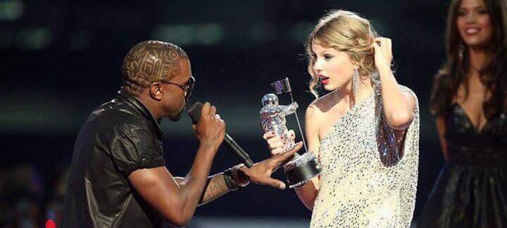 Kanye e Taylor protagonizaram uma das cenas mais comentadas da música pop em 2009, no mesma VMA. À época, o rapper invadiu o palco quando ex-cantora de música country recebia seu primeiro troféu e soltou no microfone:
