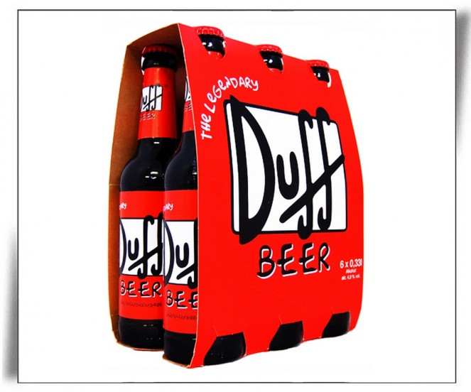 A cerveja Duff já virou marca registrada dos episódios de “Os Simpsons”. Para quem ainda não sabe, esta mesma é a bebida preferida de Homer. Houve um lançamento comercialmente visual da bebida com os Simpsons, mesmo não tendo nenhuma relação um com o outro. Porém, esta idéia acabou na justiça. A cerveja também é vendida no Brasil.