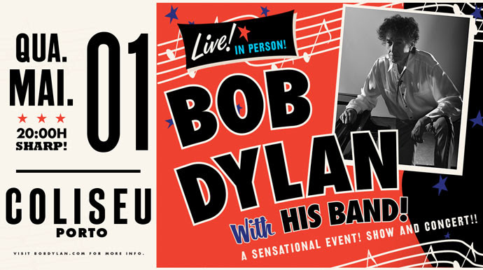 Bob Dylan fará um show único na invicta no dia 01 de maio no Coliseu do Porto. Depois de um show fabuloso esgotado, em Lisboa, um dos maiores cantores, compositores e escritores de todos os tempos escolhe o norte de Portugal para um espetáculo absoluto e imperdível. Os ingressos serão colocados à venda sábado, dia 05 de janeiro.
