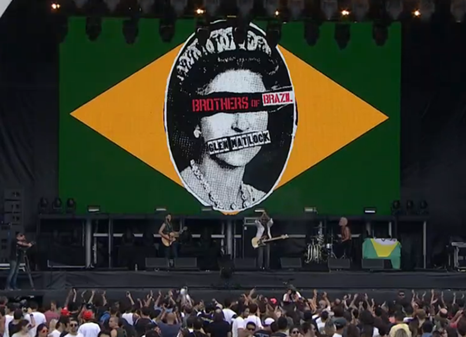 No dia em que o Pop dominava o lineup, o Rock in Rio começou com muita atitude, rock e punk: a Brothers of Brazil, banda formada por João Suplicy e Supla. Não faltou protesto. Os irmãos cantaram de “Imagine”, de John Lennon em uma versão moderna, até a cheia de críticas aos partidos “Tudo pelo poder”. A curiosidade fica por conta de a canção xingar o PMDB no dia em que a mãe de ambos, Marta Suplicy, se filiou ao mesmo em um grande evento. Eduardo Suplicy, pai dos artistas, estava no meio dos fãs e foi bastante assediado.