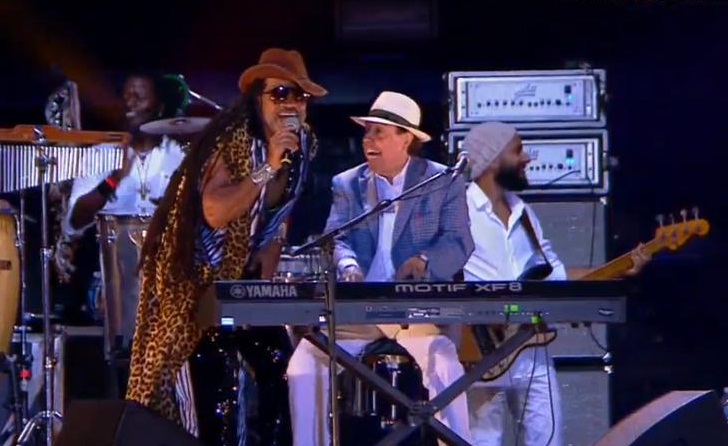 Finalizando o show, Carlinhos Brown subiu e tocou repique, antes de cantarem juntos a música tema do filme “Rio” e “Mas Que Nada”, canção do Benjor que Sérgio eternizou com os americanos do Black Eyed Peas.
