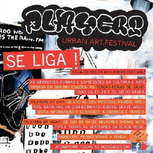 Apresentado em dois formatos, é uma opção para todas as idades: de 17h às 22h, Players by Day, com entrada gratuita e exposições de grafiti, batalhas de B.boys e Mc’s. Em seguida, o Players by Night, com live painting, basquete de rua e outras atrações para quem estiver disposto a se divertir.