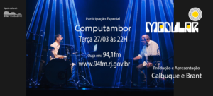 Estaremos ao vivo com Calbuque e Brant, apresentando o projeto Computambor dos grandes mestres rítmicos Marcos Suzano e Marcelo Vig.