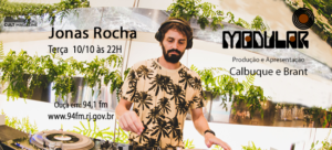 Daqui a pouco, às 22h, no programa Modular o DJ e produtor Jonas Rocha, que conversará com os nossos anfitriões Calbuque e Jose Brant, na Rádio Roquette Pinto.