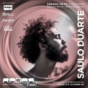 Daqui a pouco, às 17h, o cantor e compositor paraense, Saulo Duarte estará nos estúdios da Rádio Roquette Pinto, no Programa Radar para falar do seu primeiro álbum solo.