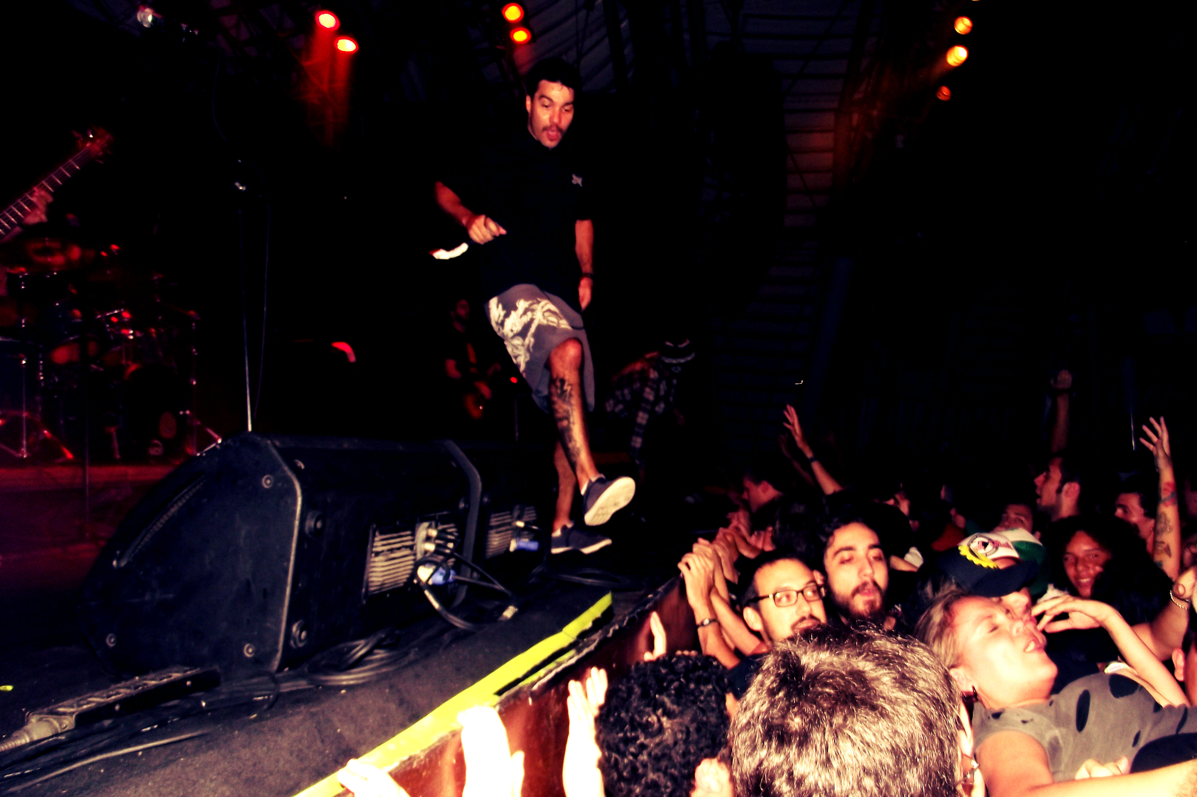 O palco de Dead Fish foi o tempo todo tomado pelos fãs, m verdadeiro festival de mosh. A sintonia entre a banda e o público era impressionante, mas como nem todo mundo sabe se comportar Rodrigo se estressou com um fã que subiu ao palco e roubou sua cerveja.