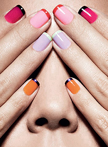 As unhas em degradê do ano passado enfim dão adeus e abrem espaço para a nova tendência: francesinhas coloridas.