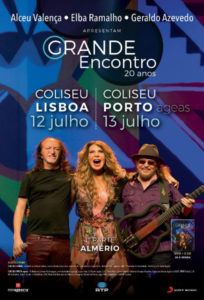 O Grande Encontro, espetáculo que reúne Elba RamalhoGeraldo Azevedo e Alceu Valença chega finalmente a Portugal. Este evento único da música brasileira passa pelo Coliseu dos Recreios em Lisboa e pelo Coliseu do Porto, a 12 e 13 de julho, respectivamente.
