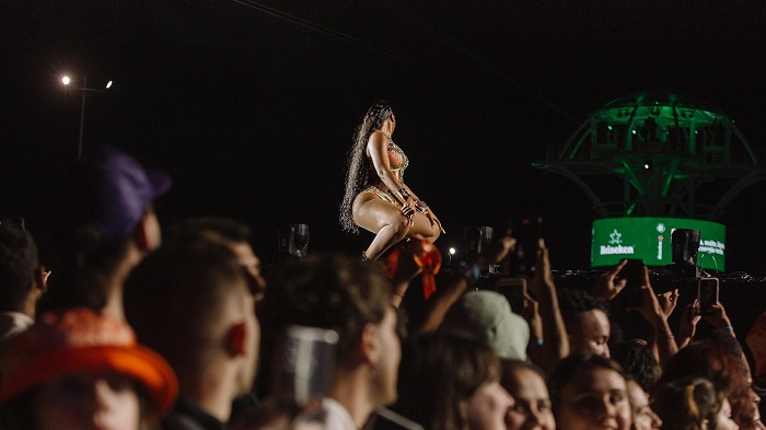 Chegou fantasiada de passista de escola de samba e arrancando aplausos. Abriu com “Realer” e “NDA”. Fez um cover de Cardi B em “WAP”.
