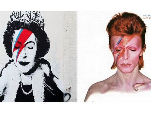 Grafite de Elizabeth II inspirado em David Bowie seria de Banksy