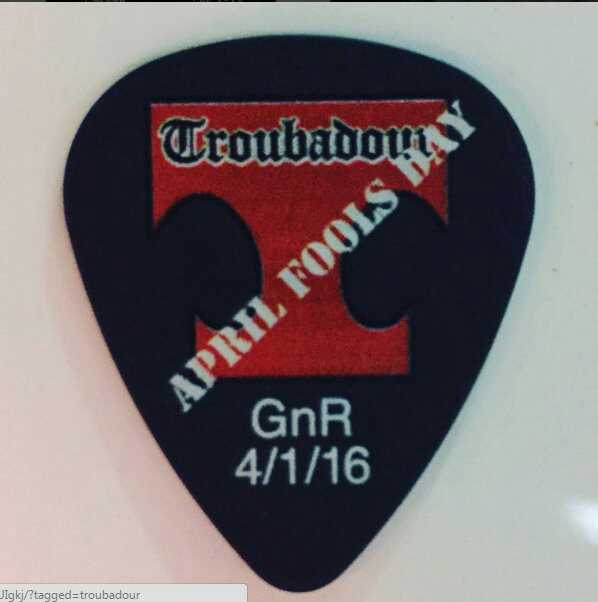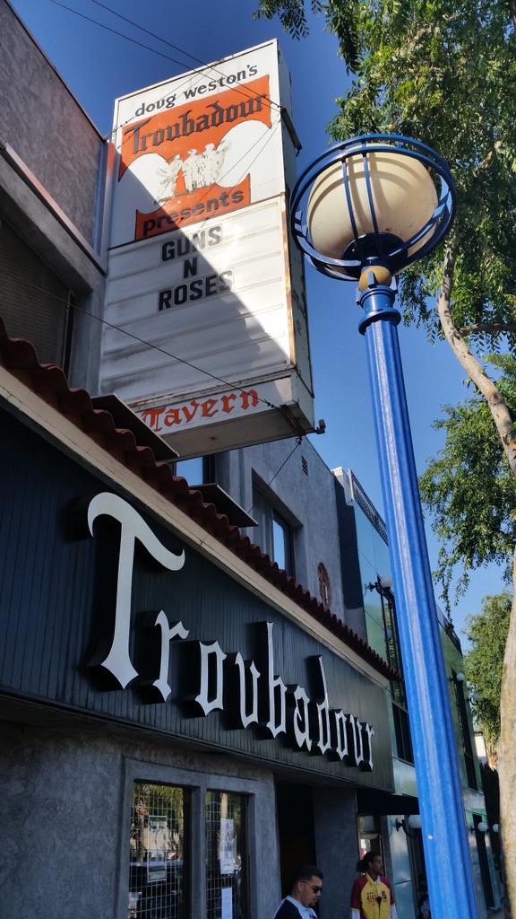 De surpresa, o Guns N’ Roses fez um show na madrugada desta sexta-feira, 1º, no pequeno clube Troubador, em Los Angeles, nos Estados Unidos. A apresentação aconteceu uma semana antes da apresentação que havia sido anunciada como a volta da banda, marcada para o dia 8, em Las Vegas. O local foi onde a banda fez também uma das suas primeiras aparições, na década de 1980. Além do Axl Rose, também estiveram presentes Slash, Duff McKagan e Steven Adler, mas este último não tocou.