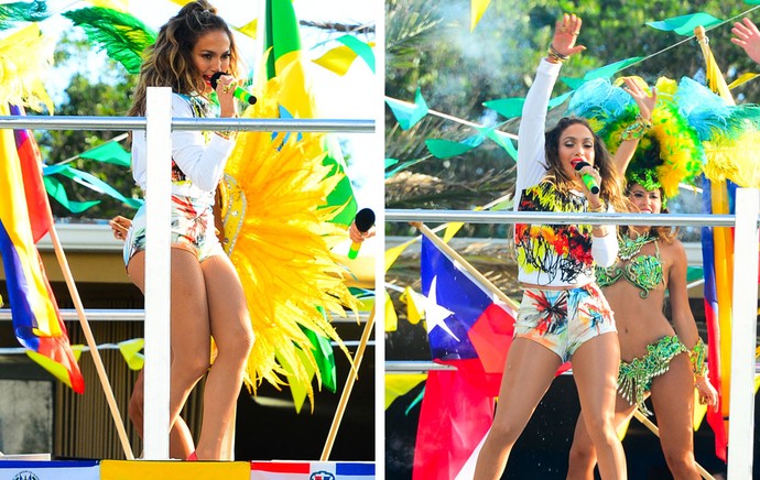Já é carnaval em Fort Lauderdale, na Flórida. Pelo menos por uns dias, a cidade americana foi palco da festa brasileira para gravação do clipe da música “We Are One”, onde Jennifer Lopez, Pitbull e Claudia Leitte embalaram com a música oficial da Copa do Mundo de 2014. As roupas dos três artistas abusaram de cores coloridas para dar um clima brasileiro. As filmagens foram destaque nos jornais americanos e lembraram o visual ousado das musas JLo e da brasileira.