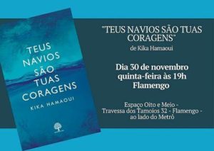 O novo título, “Teus Navios são Tuas Coragens” fala sobre temas presentes no dia-a-dia de todos; como morte, bravura, sexo e solidão de uma forma poética e filosófica: “São temas que atravessam a vida de todo mundo em algum momento. Quantas vezes já aconteceu de estarmos deitados e pensamentos existenciais insistirem em não sair da cabeça? O projeto literário fala exatamente disso, sobre as nossas motivações diárias para levantar da cama”, comenta Kika Hamaoui, sobre sua nova empreitada. O lançamento está marcado para o dia 30 de Novembro, quinta-feira, no espaço Oito e Meio. O livro será publicado pela Editora Viéis (depois da empreitada bem sucedida de financiamento coletivo em “Replexidão”), e apesar de ter sua versão também digital, a capa física é a principal aposta.