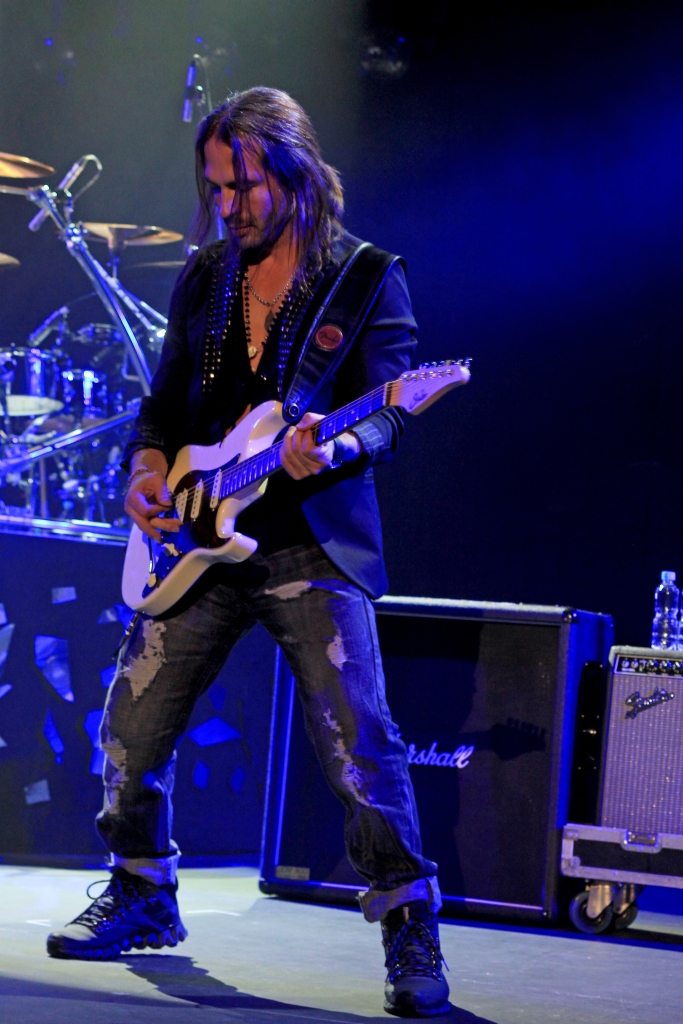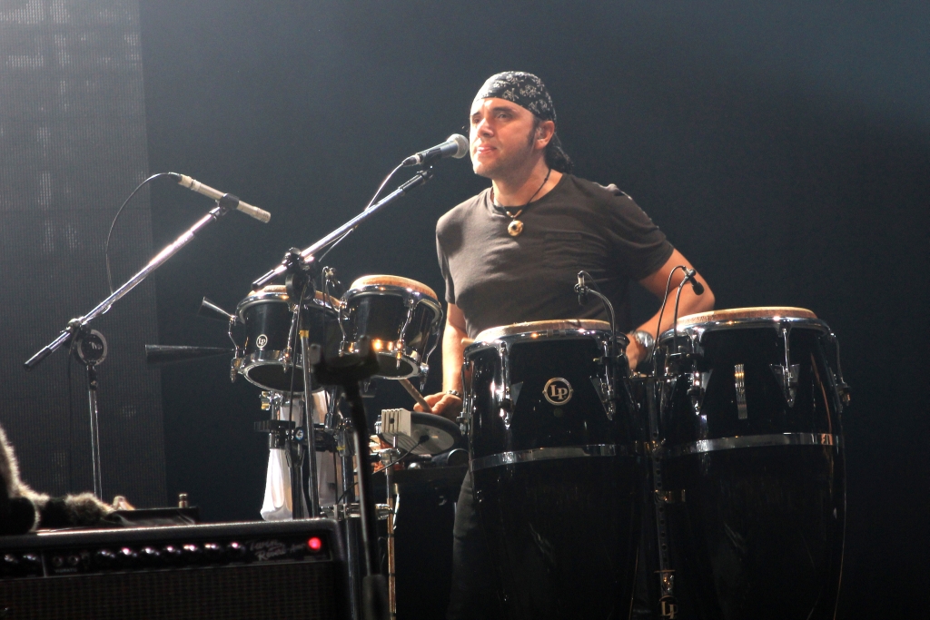 O Maná fez uma presentação vigorosa e carismática, uma boa produção, com direito a um enorme telão de led no fundo do palco, explosões na abertura, tochas que espirravam fogo nas laterais e vapores fortes de gelo seco. A abertura ficou por conta de “Oye Mi Amor” que só aumentou o ânimo dos fãs, e é uma das músicas mais agressivas e agitadas do grupo, que já nos chamou atenção mais uma vez para o baterista Alex González . Em seguida, os arranjos eletrônicos de “Dejame Entrar” mudam completamente o clima do palco dando espaço para um pop rock viciante que fez Alex apontar para o público sensualmente convidando-os para se soltar. Assim estalou os dedos e de pé na bateria improvisou passos de dança, que levou os fãs a loucura.