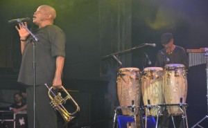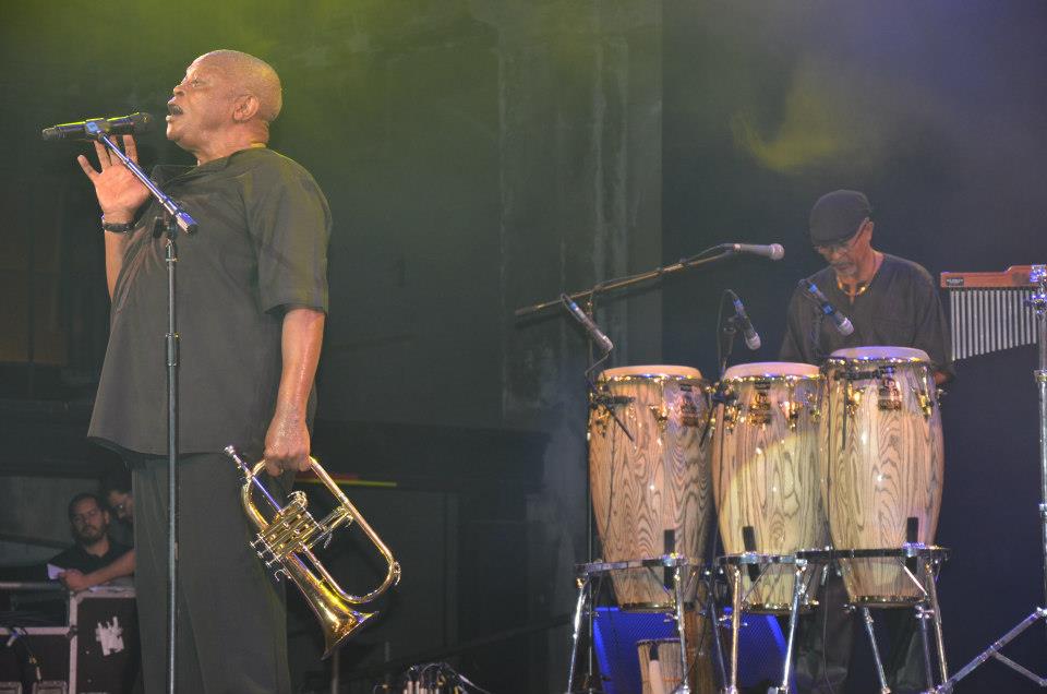 Com certeza, esse é o dia que possui a escalação mais repleta de expectativas por parte de público, pelo ineditismo em “terras brasilis” e importância ímpar dos artistas escolhidos. Na sequência ao show de Naná, mais uma atração com status de lenda, sem ao menos nos deixar respirar. O trompetista sul africano Hugh Masekela, se radicou nos EUA nos anos 60 para fugir do regime segregacionista que dominou durante décadas o seu país. Foi no exílio que ganhou seu primeiro trompete das mãos de nada mais, nada menos Louis Armstrong, com 16 anos de idade. O não menos estelar Dizzy Gillespe foi o responsável pela sua primeira matrícula numa escola de música. Através de sua ex-esposa, a cantora Miriam Makeba, teve o primeiro contato com a música brasileira através do saudoso acordeonista Sivuca, integrante de sua banda e sempre flertou com sonoridades do nosso cancioneiro em sua vitoriosa carreira como músico. Foi comunicado numa ligação inesperada de Nelson Mandela sobre o fim do apartheid em 1990, após 30 anos sem pisar na África do Sul. Já tinha ficado impressionado com sua apresentação na abertura da copa do mundo em seu país, mas o show de ontem, superou qualquer tipo de expectativa. Pra começar a sua incrível vitalidade (do alto dos seus 72 anos!), cantando (e muito!), tocando percussão e tirando aquele maravilhoso e já conhecido som cristalino do seu trompete. Foi uma aula do que podemos chamar de jazz fusion, só que acrescido com forte dose de “latinidade” e “africanidade”, com o improviso comendo solto! Sua versão instrumental de “Mais que Nada” (Jorge Ben Jor), proporcionou o coral do público mais bonito da noite.