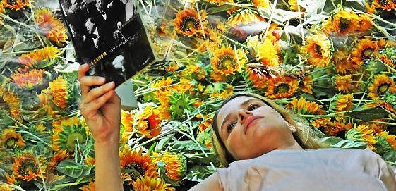 Em meio a tantos girassóis, os atores sacam livros que antes estavam escondidos, e durante a apresentação recitam alguns trechos que também constituem esses fragmentos.