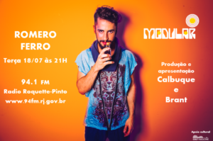 O programa Modular de hoje terá o convidado Romero Ferro que conversará com Calbuque e Jose Brant sobre o novo disco “Arsênico” e a música de trabalho “No Mesmo Teto”. O cantor e compositor também falará sobre a indicação no 28º Prêmio da Música Brasileira.
