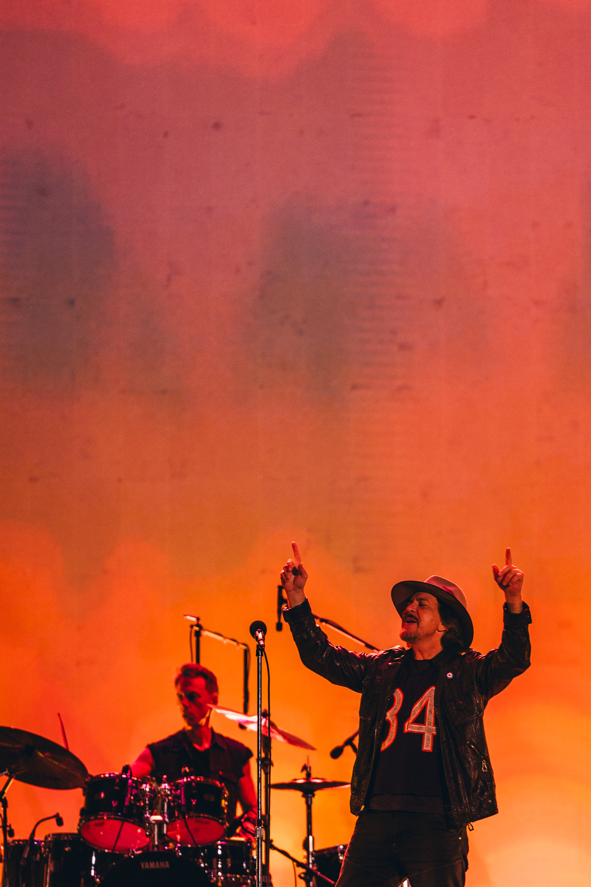 Encerrando a noite de maneira épica, os Pearl Jam subiram ao palco para uma performance inesquecível que coroou o NOS Alive 2024. Liderada pelo carismático Eddie Vedder, a banda icónica de Seattle entregou um setlist que passeou por sua vasta discografia, incluindo clássicos como “Alive,” “Even Flow” e “Black,” bem como faixas mais recentes. A profundidade emocional das letras, a intensidade das performances instrumentais e a voz poderosa de Vedder criaram momentos de pura magia musical. Houve ainda dois momentos de covers, quando ao falar da situação atual do mundo, Eddie Vedder disse não tocar sempre esta determinada canção, mas que ela fazia todo o sentido e assim, a banda tocou “Imagine”, de John Lennon. Mais adiante, foi a vez de “Rockin’ in the free world”, de Neil Young, antes mesmo de “Yellou Ledbetter”, que encerrou a apresentação.