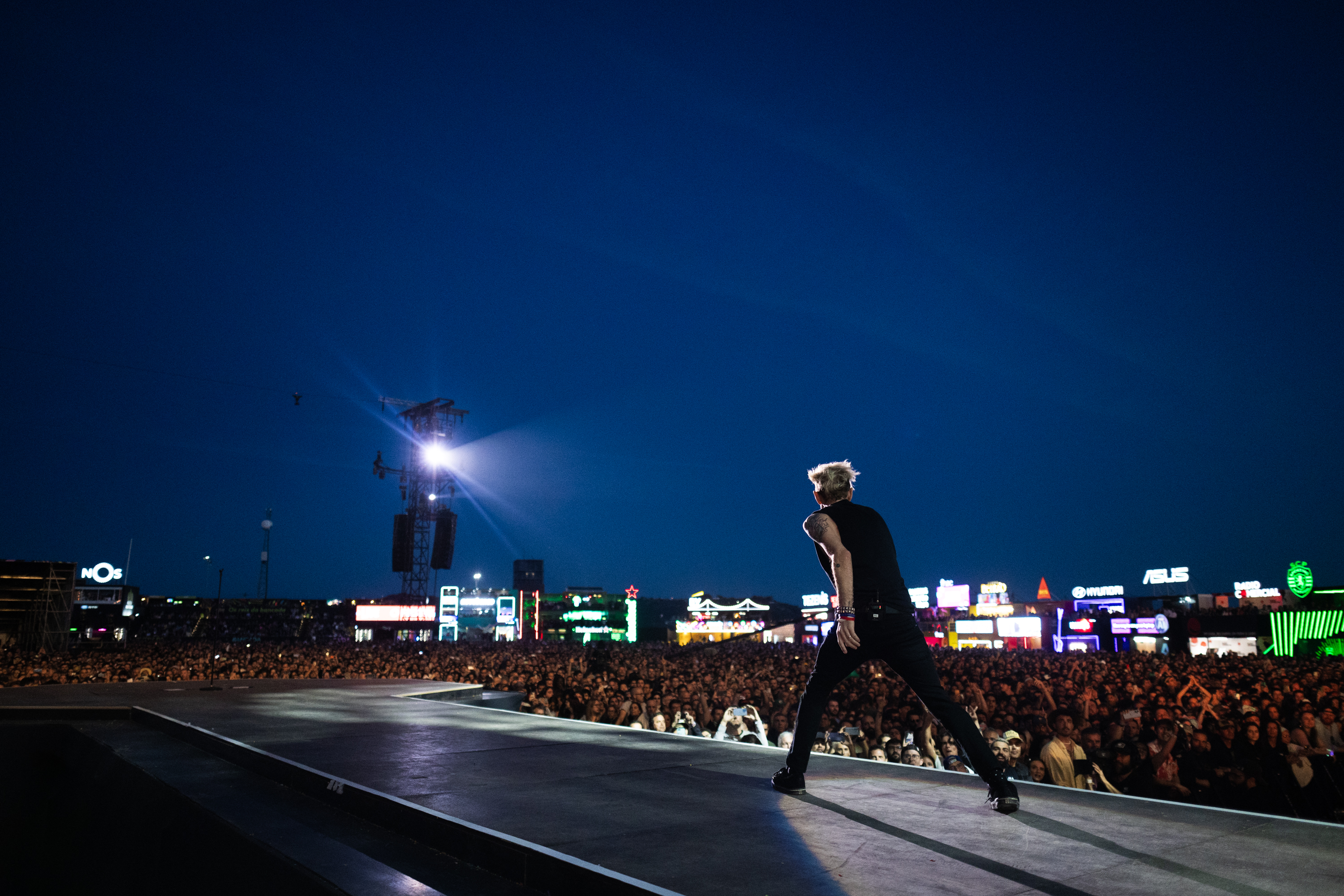 Quando os Sum 41 entraram em cena, o palco do NOS Alive foi tomado por uma explosão de punk rock. A banda canadiana, liderada por Deryck Whibley, incendiou a audiência com hits como “Fat Lip,” “In Too Deep” e “Still Waiting”. A energia contagiante e a performance dinâmica de Whibley, aliadas aos poderosos riffs de guitarra e à bateria intensa, mantiveram o público em constante movimento. A entrega visceral e a interação carismática com os fãs fizeram do concerto uma celebração eletrizante do punk rock, reafirmando a relevância contínua de Sum 41 no género.