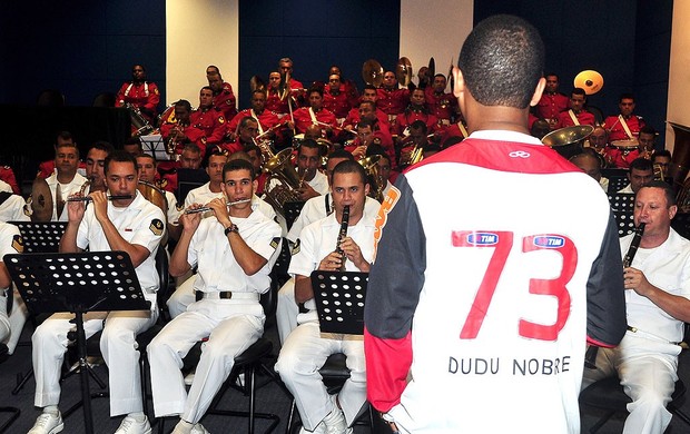 – Já cantei o hino do Flamengo na Gávea, na apresentação do Vágner Love e também no lançamento da pedra fundamental do Ninho do Urubu (Centro de Treinamento do Flamengo), mas em estádio é a primeira vez. – confidenciou Dudu Nobre ao programa Pop Bola, da Rádio MPB FM, sem esconder a ansiedade e o nervosismo pela ocasião.