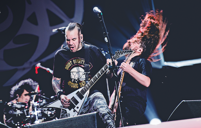 No palco sobrou fogo e um enorme cabeça demoníaca ao fundo. A apresentação seguiu com “Aov” e “Vermilion”, causando enorme alvoroço entre os fãs, que não paravam de “bater cabeça” em enormes rodas punk. Corey falou então com os presentes: