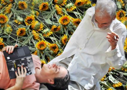 O cenário é envolto por 6 mil girassóis artificiais em ‘A Gaivota’. Peça do russo Tchekhov é repleta de reflexões sobre a criação.