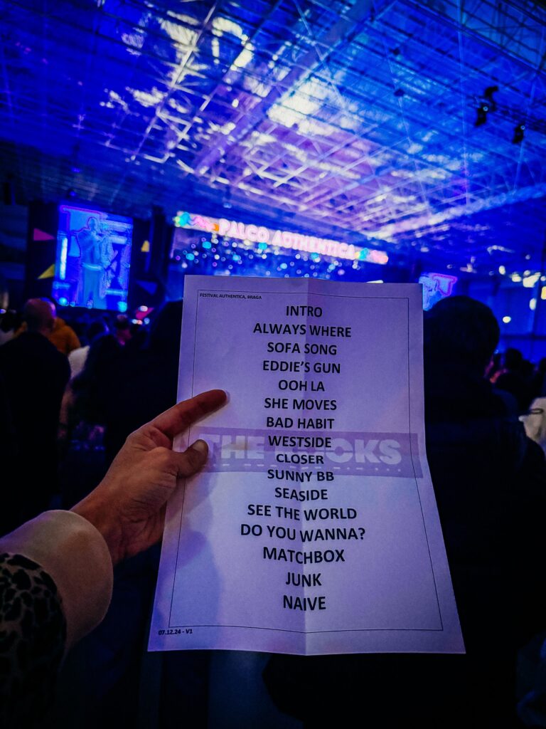 Entre trocas de guitarras e arranjos musicais refinados, The Kooks transportaram a plateia para uma viagem nostálgica pelos clássicos do indie rock que marcaram gerações. A setlist incluiu sucessos como “Always Where I Need to Be”, “She Moves in Her Own Way”, acabando com a inconfundível “Naive”, que encerrou o concerto numa versão mais suave do que o esperado, talvez deixando alguns fãs à espera de um final mais explosivo. A apresentação também trouxe novidades, com a estreia da faixa “Sunny Baby”, recebida com carinho pela plateia.